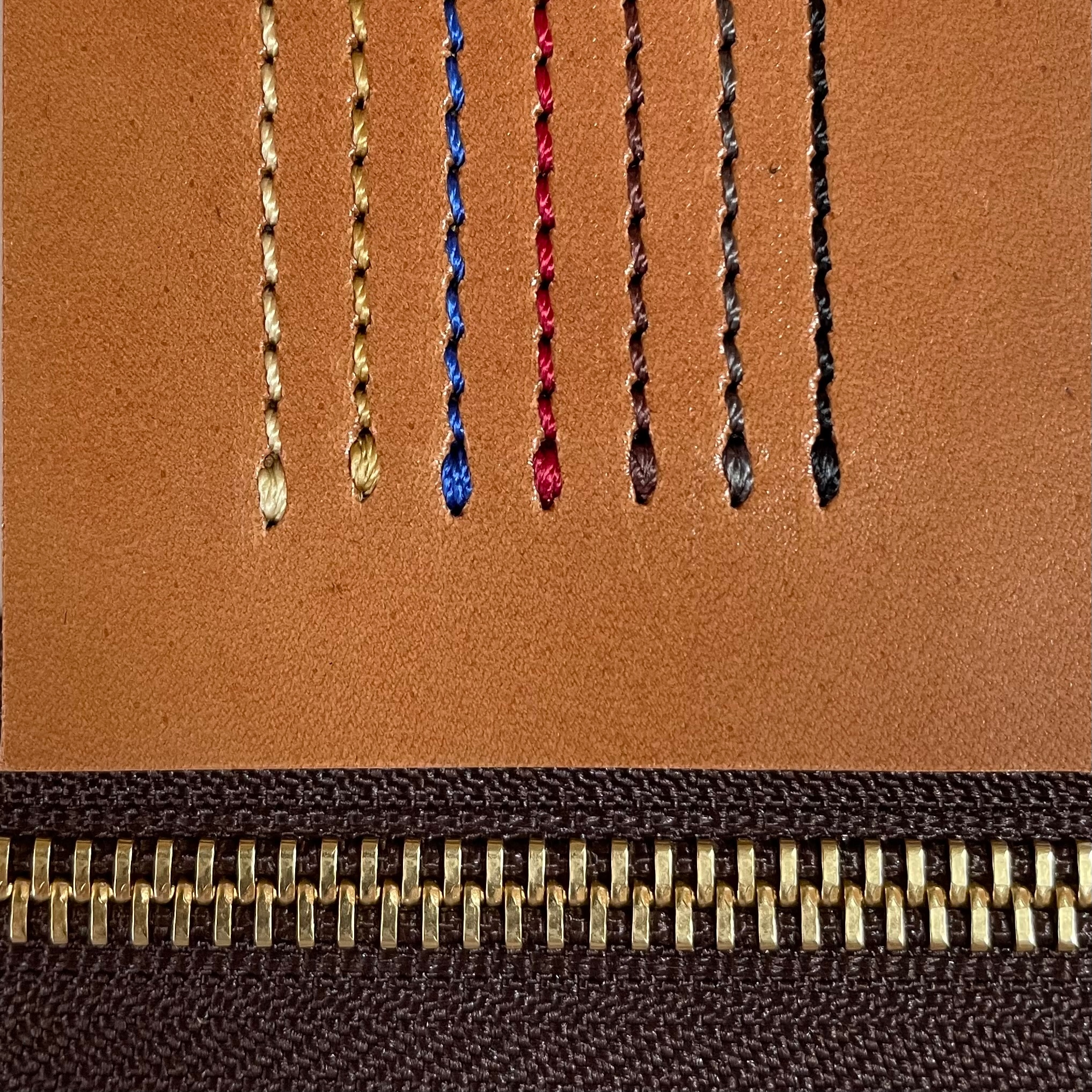 少し黄みがかったノーマルシルバーファスナーには糸色/ライトナチュラルがおすすめです。